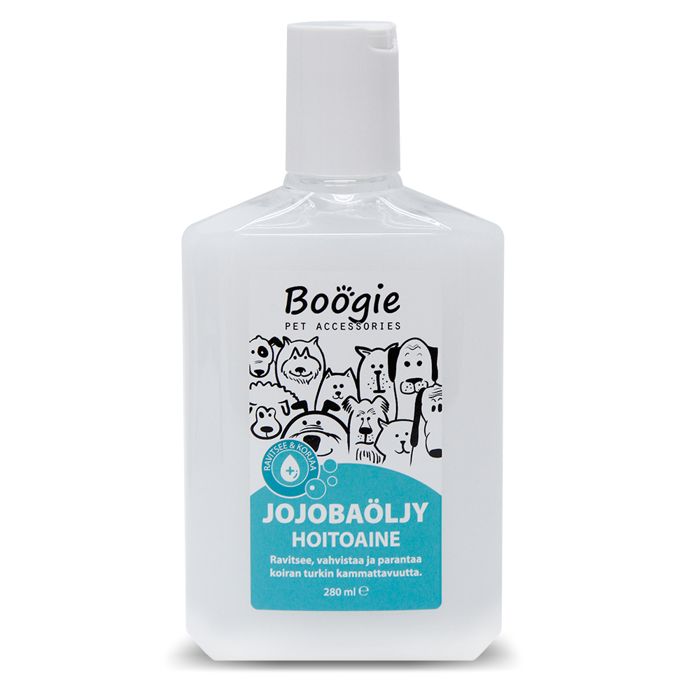 Luonnollista jojobaöljyä sisältävä hoitoaine koirille.