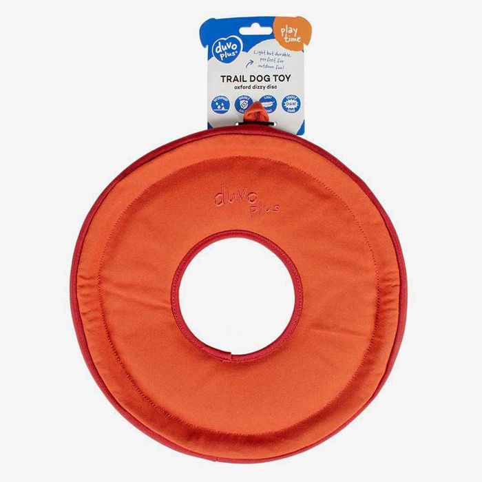 Kevyt ja kestävä Duvo+ Trail Dog -koiranlelu lentää pitkälle ja kestää seikkailuja kaikissa sääolosuhteissa – täydellinen aktiiviselle koiralle.