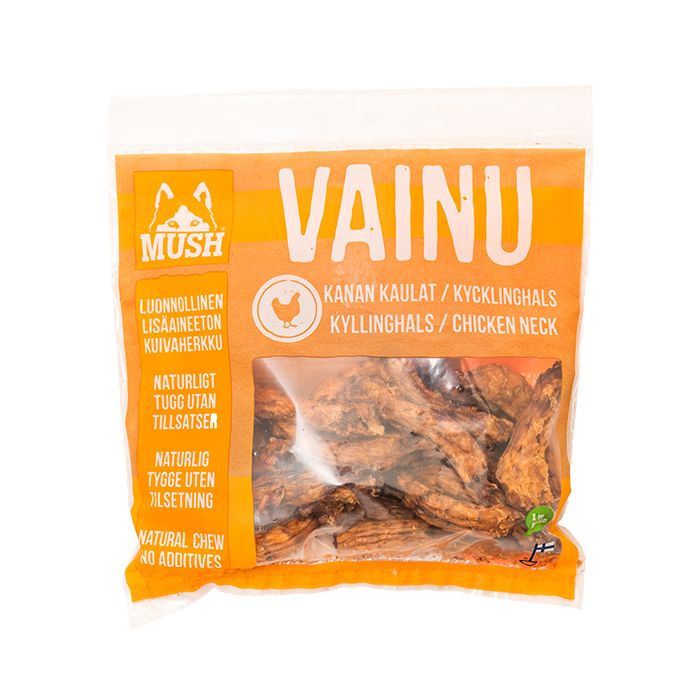 Suomessa valmistettu herkullinen ja rapea välipala lihansyöjille. MUSH VAINU -kuivaherkut ovat maistuvia ja terveellisiä välipaloja, jotka soveltuvat kaikkiin lemmikin elämänvaiheisiin. Kanankaula on täydellistä leukajumppaa tarjoava herkku, joka soveltuu erityisesti pienille koirille ja kissoille. Rapea kanankaula on mahdollista pilkkoa pienemmäksi, syöjän suuhun sopivaksi.