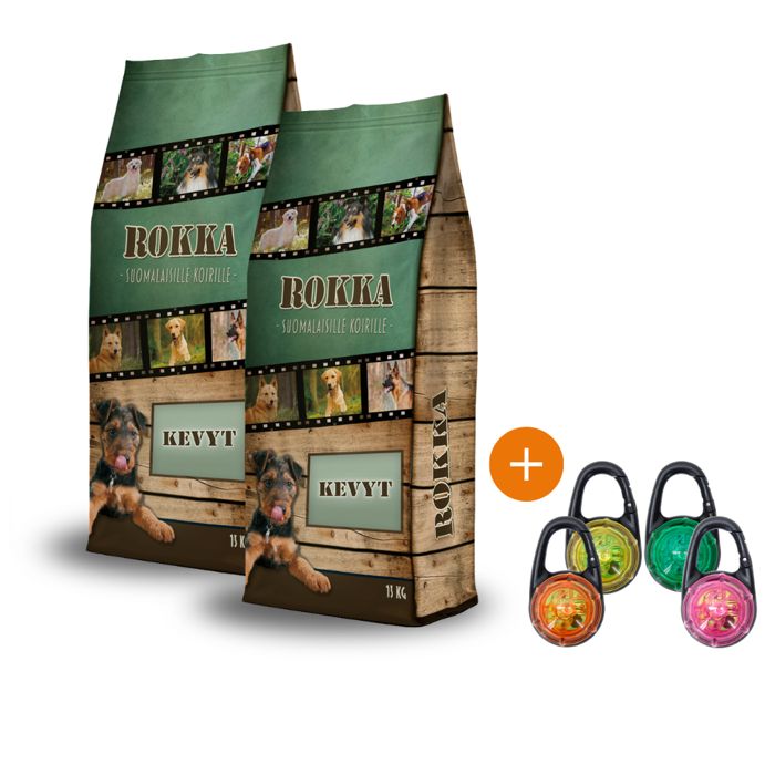 Kampanjatarjous: 2 x 15 kg Kevyt Rokka täysravinnon ostajalle KAUPAN PÄÄLLE Boogie See Me koiran huomiovalo! Valitse huomiovalon väri neljästä vaihtoehdosta.
