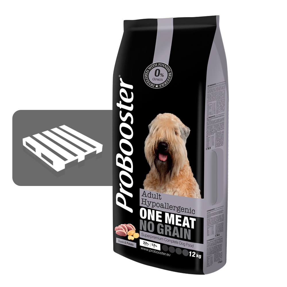 Viljaton ProBooster Adult Hypoallergenic on kehitetty erityisesti vastaamaan herkkien ja ruoka-aineallergioista kärsivien koirien ravitsemustarpeita.