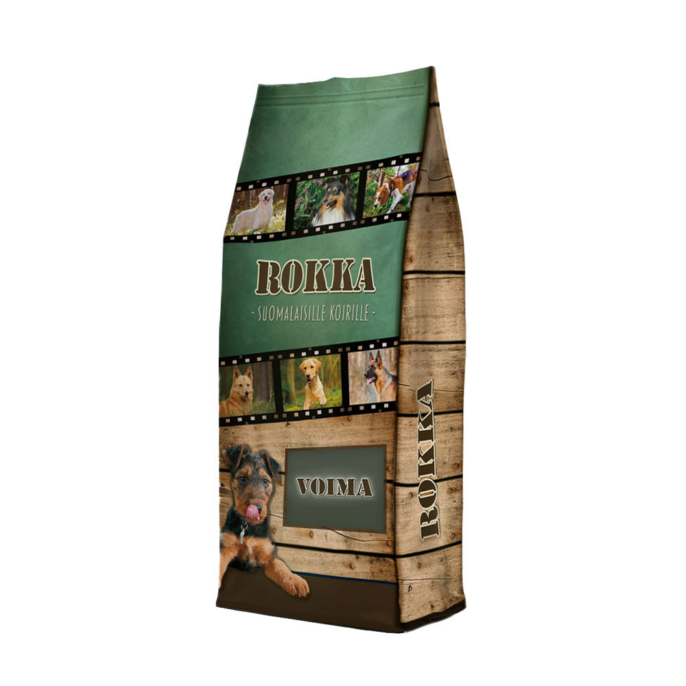 Voima Rokka on oiva valinta aktiivisen aikuisen koiran ruokintaan. Se sisältää hieman enemmän energiaa luonnostaan liikkuvaisemmille ja touhukkaammille tai kevyissä harrastus- tai työtehtävissä käytettäville koirille.