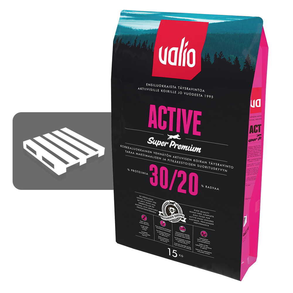 Valio Active on erityisesti harrastus- ja työkoirille suunniteltu tehokas täysravinto, joka tyydyttää aktiivisen koiran energiantarpeen. Ruoka sopii kaikenkokoisille- ja rotuisille koirille. Se on erinomainen valinta esimerkiksi reki- ja metsästyskoirille sekä näyttelykoirille, joiden lihakset vaativat ylläpitoa.