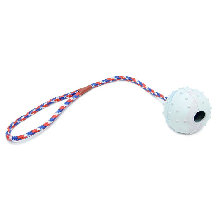 Ontto luonnonkumipallo käsilenkillisellä narulla. Narupallo soveltuu monipuolisiin heitto-, saalis- ja vetoleikkeihin koiran kanssa. Ontto luonnonkumipallo tarttumista helpottavilla nystyröillä on hellävarainen koiran hampaille ja leuoille. Narupallo sopii mainiosti myös lelupalkkaukseen koulutuksessa. Se voidaan heittää pitkälle ja haastaa koira riehakkaaseen saalis- ja vetoleikkiin. Ohuehko naru ja halkaisijaltaan 6 cm pallo soveltuu pienille ja keskikokoisille koirille.
