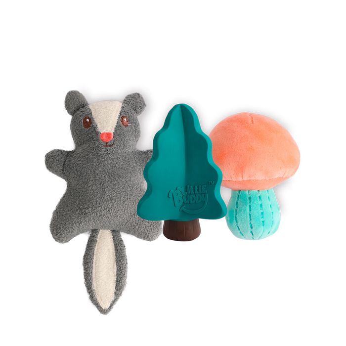 ‌Ihastuttavassa lelusetissä on kolme erilaista lelua koiranpennulle tai pienelle koiralle. Metsäaiheinen lelukokonaisuuden erilaiset figuurit tarjoavat vaihtelua ja iloa koiranpennun leikkeihin.