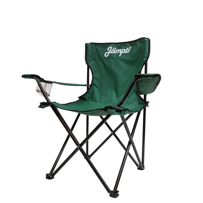 ‌‌Kätevä kokoontaittuva retkituoli Jämpti -tuotemerkin logolla.
