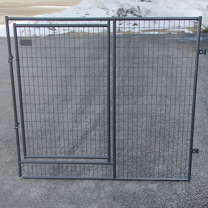 Ovi voidaan kiinnittää myös rakennuksen seinään erillisten seinäkiinnikkeiden avulla (Jämpti Pro Seinäkiinnike, sinkitty). Ovielementti leveällä ovella on kätevä myös sisätiloihin rakennettujen aitausten yhteydessä, esim. kenneltiloissa.
