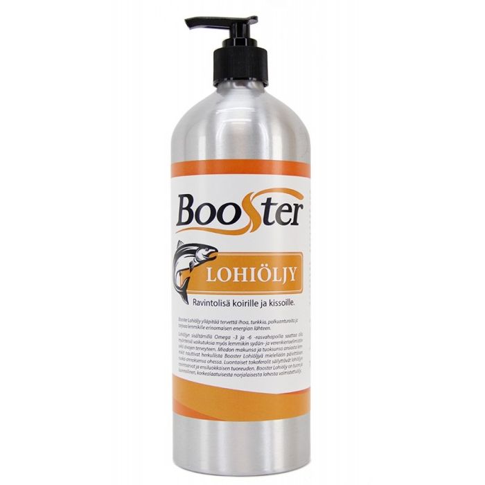 Energiaa ja hyvinvointia lohesta! Booster Lohiöljy on luonnollinen ja tuore öljy norjalaisesta lohesta. Se auttaa ylläpitämään tervettä ihoa, turkkia, polkuanturoita ja tarjoaa lemmikille erinomaisen energianlähteen.