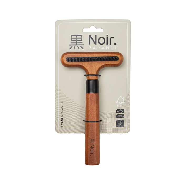 Noir Japandi -hara poistaa tehokkaasti kuollutta ja irtonaista karvaa tiheästä aluskarvasta, erityisesti karvanlähdön aikaan. Harassa on yksi rivi galvanoituja, ruostumattomasta teräksestä valmistetut piikit, jotka pyörivät ja joustavat, tehden harjauksesta hellävaraista ja tehokasta.
