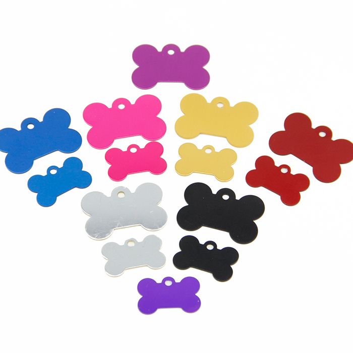 Tilasin molemmille koirille samanlaiset nimilaatat. Iso musta johon mahtui nätisti 2 puhelinnumeroa