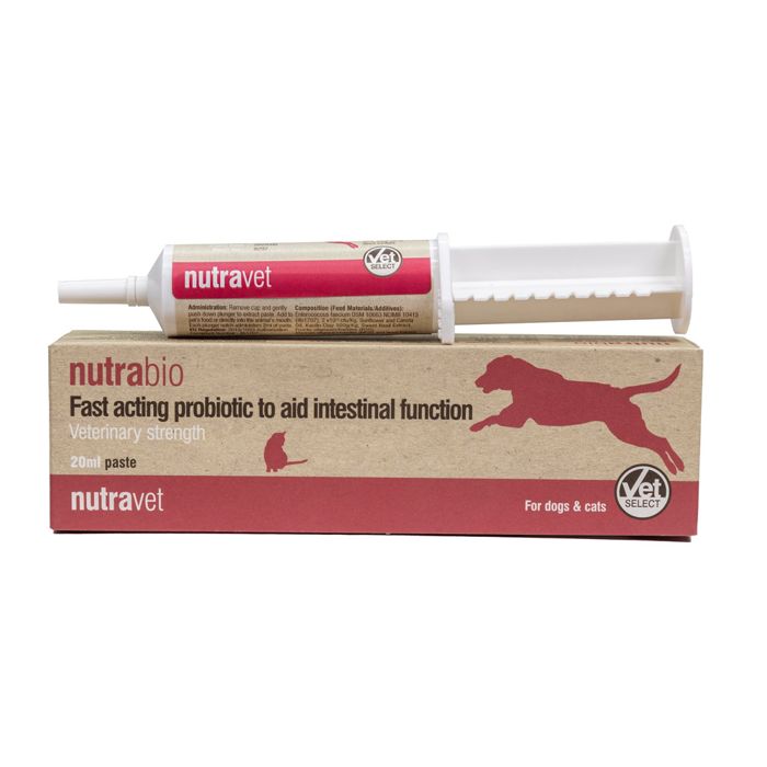 Nutrabio® on luonnollinen tahna koirille ja kissoille, joka tukee ruoansulatuskanavan normaalia toimintaa. Se on kehitetty sisältämään tehokkaan yhdistelmän probioottibakteereja, prebiootteja, basilikaa ja kaoliinia, jotka yhdessä auttavat tasapainottamaan ruoansulatusta. Nutrabio tarjoaa nopeasti vaikuttavan koostumuksen koirien ja kissojen herkille vatsoille.