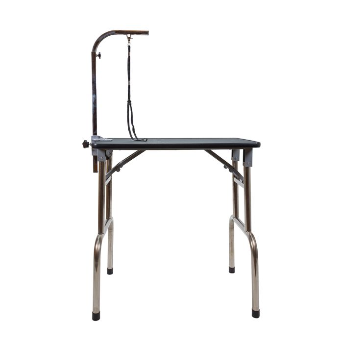 Korkealaatuinen Shernbao trimmauspöytä on erinomainen valinta niin ammatti- ja kotikäyttöön kuin näyttelyihinkin. Mukana tulee säädettävä talutinpidike sekä trimmauslenkki, joka varmistaa lemmikin turvallisen ja vakaasti paikallaan pysymisen trimmauksen aikana.