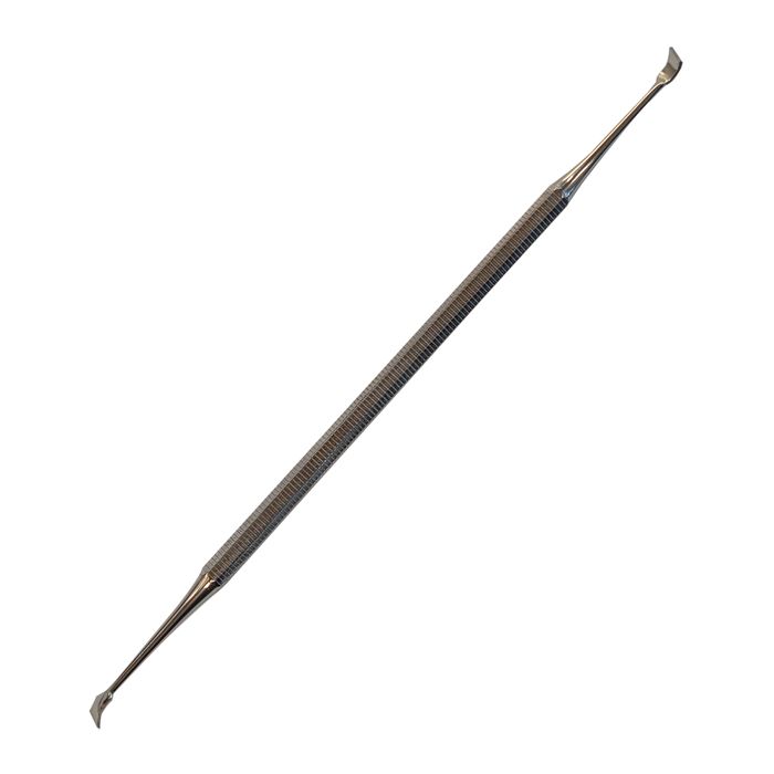 Kaksipäinen työkalu, jonka toinen pää soveltuu leuan oikealle ja toinen vasemmalle puolelle. Hampaan pinnan mukaan muotoiltu leveä terä. Kuvioitu varsi, josta saa hyvän otteen. Ole hellävarainen ja varo vahingoittamasta koiran ikeniä ja hammaskiillettä.