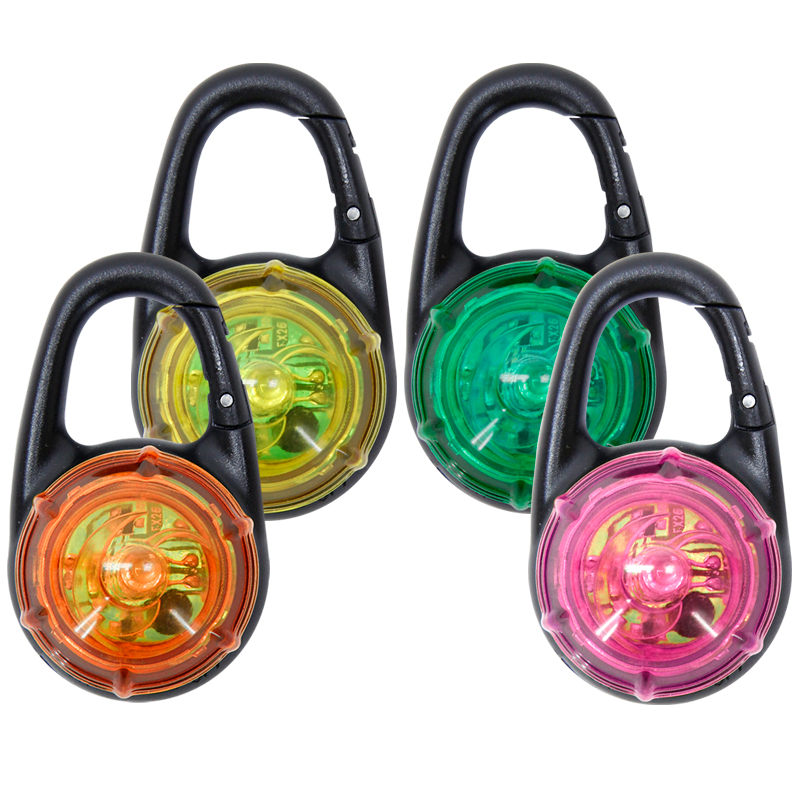 Vaihdettavat paristot (2 x CR2032). Toiminta-aika yksillä paristoilla on n. 100 h jatkuvalla valolla ja n. 200 h vilkkuvalolla. Hakakiinnikkeellä valo on helppo kiinnittää esim. pantaan, taluttimeen, valjaisiin tai vaatteeseen. Kiinnikkeen ansiosta valo roikkuu pannasta ja näkyy hyvin myös pitkä- tai paksuturkkisilla koirilla.
